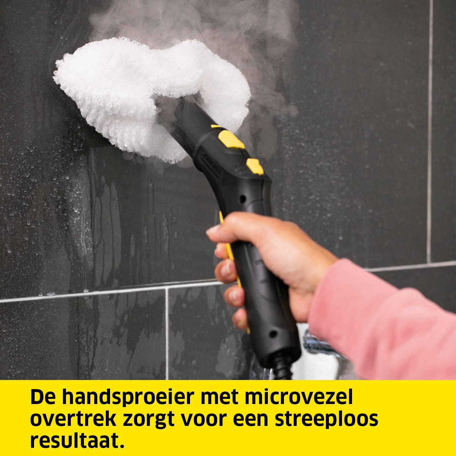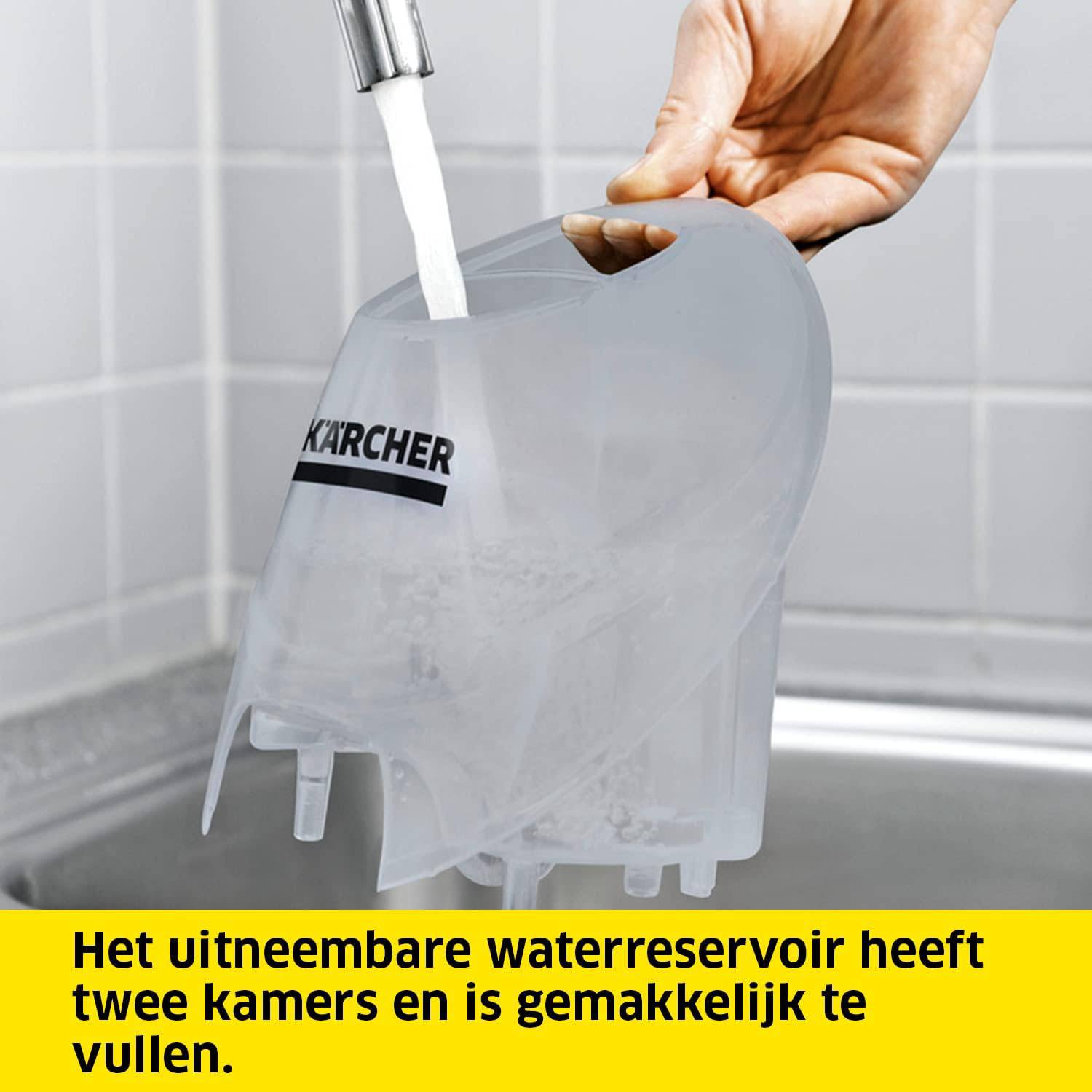Le nettoyeur vapeur SC 4 EasyFix de Kärcher garantit des résultats de nettoyage optimaux à la maison. Il ne lui faut que 4 minutes pour chauffer et offre une pression de vapeur de 3,5 bars maximum. Le réservoir d'eau amovible possède deux réservoirs séparés d'une capacité de 0,5 l et 0,8 l. Un seul remplissage permet de nettoyer confortablement une surface allant jusqu'à 100 m². Le flexible vapeur de 2 m avec poignée permet d'éliminer facilement les saletés. De plus, il élimine même jusqu'à 99,99 % des virus* et des bactéries**. Le kit de nettoyage de sol EasyFix permet d’utiliser le nettoyeur vapeur pour laver les sols. La serpillière est équipée d'un système de scratch et d'une languette, ce qui permet de la fixer et de la retirer facilement de la buse, sans contact avec la saleté. Pour les saletés tenaces, la buse à jet crayon ou la petite brosse ronde sont des accessoires indispensables. Le suceur à main et sa bonnette en microfibres permettent de nettoyer les surfaces délicates, comme l'inox, le verre ou les plaques de cuisson. Le nettoyeur vapeur est donc un véritable outil polyvalent indispensable à tout ménage.